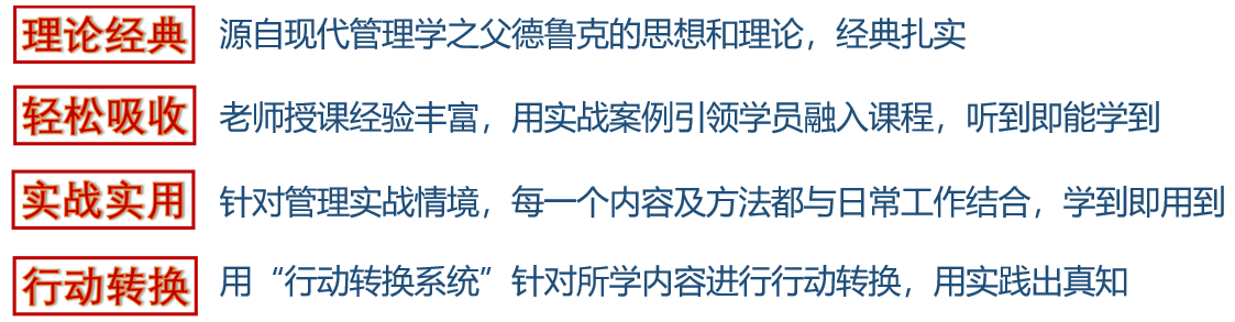 課程背景:本課程開發(fā)源自現(xiàn)代管理學(xué)之父彼得·德魯克最為經(jīng)典的著作——《卓有成效的管理者》,充分運(yùn)用管理大師的管理思想精髓與現(xiàn)代管理實戰(zhàn)方法相結(jié)合,針對中國企業(yè)現(xiàn)狀和管理者現(xiàn)狀特別設(shè)計和研發(fā),具有極強(qiáng)的實戰(zhàn)性和操作性,能直接達(dá)到即學(xué)即用的效果,幫助中國的管理者走向卓有成效之路。《專業(yè)化管理-卓有成效的管理者》從本質(zhì)上提升對管理的理解,讓管理者掌握必備的管理方法