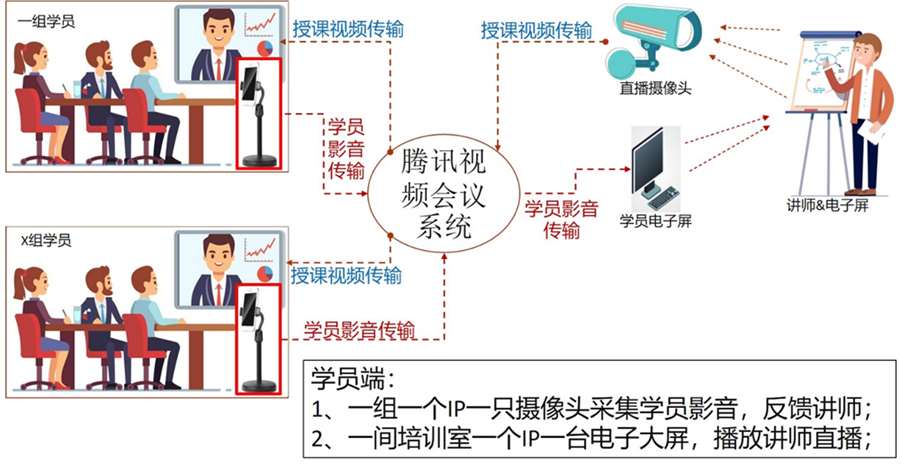 項(xiàng)目采用雙向互動(dòng)的騰訊會(huì)議平臺(tái),實(shí)施小班教學(xué)的公開(kāi)培訓(xùn)課,每次課程會(huì)根據(jù)參訓(xùn)企業(yè)行業(yè)特征進(jìn)行配置,以確保企業(yè)能獲取最大化收益;為確保課程效果限制每次課程接入IP終端數(shù)量不超過(guò)7個(gè);即參訓(xùn)學(xué)員需在企業(yè)會(huì)議室集中參與,并保持雙向視頻互動(dòng)。